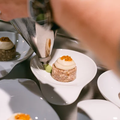 Viermal im Jahr öffnet das kUEchenwerk für jeweils drei Tage als Restaurant auf Zeit und serviert ein exklusives 3- bis 5-Gang-Menü, das eine Jahreszeit kulinarisch interpretiert.