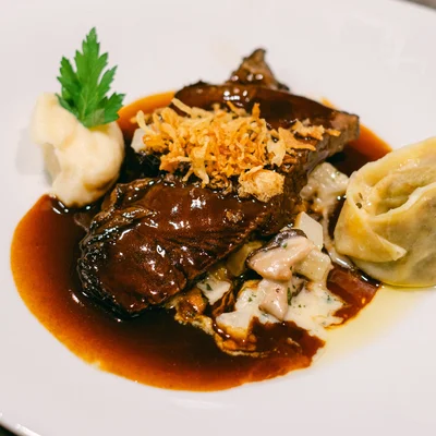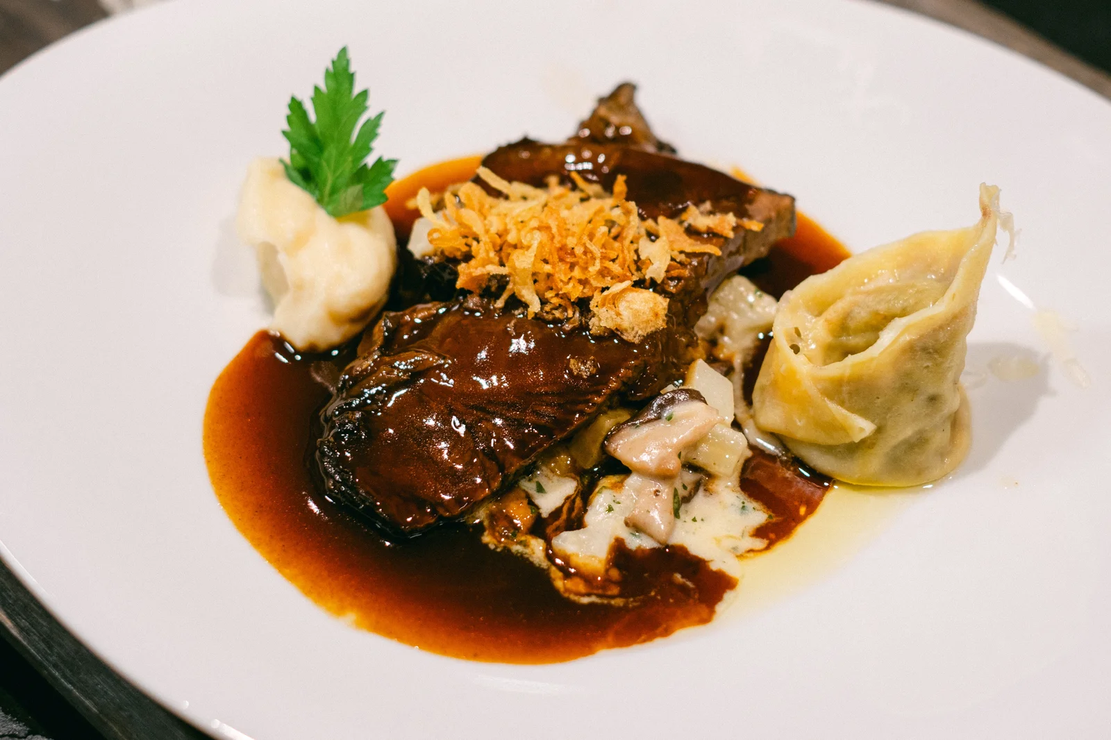 - handgemachte Schlutzkrapfen und Knödel, begleitet von feinen Fonds und Schäumen,